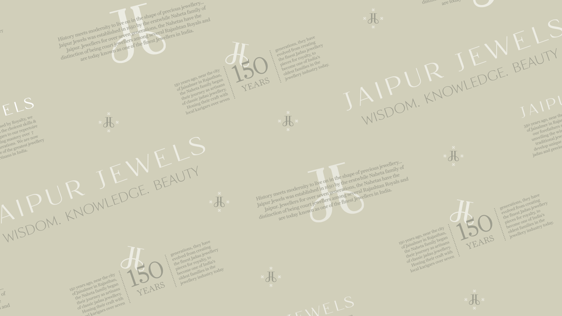 The monogram weaves the two J’s together to form an H, personifying the ‘House of Jaipur Jewels’. Used subtly to craft shapes and patterns, it is the cornerstone of the brand’s visual language. A symphony of understated elegance.